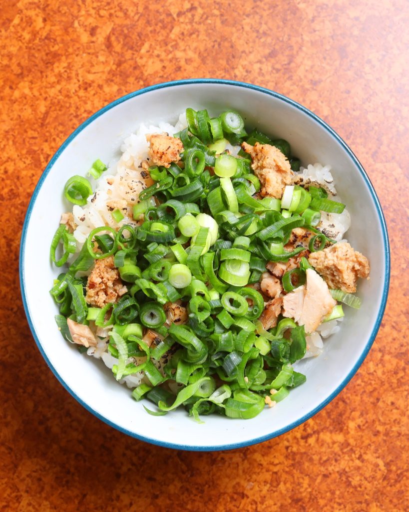 炙りチャーシューとネギを熱々のご飯の上にのせ、ラーメンと一緒にかき込むのがオススメ。